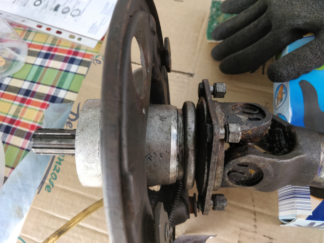 j'ai mis sous presse pour expulser l'arbre ,resultat : plaque de frein deformée :boulet2: