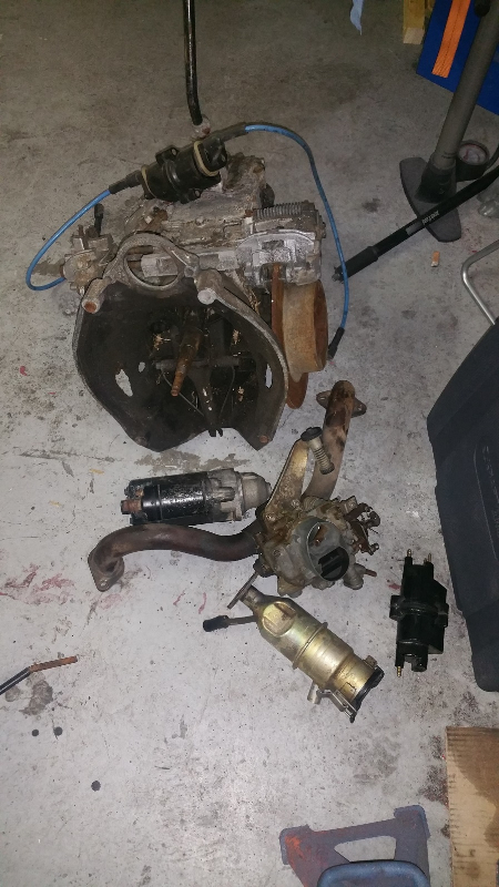 Donc me voilà avec un moteur qui franchement à l'air bien propre,pas de fuite flagrante ,qui tourne à la main et quasi complet ,2 BV et 2 bobines :clap: