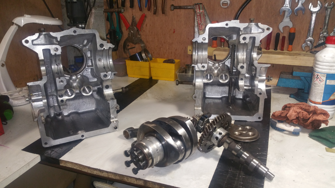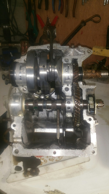 Suite des travaux Ouverture du boc ...beurkk ,c'est grado ,plein de boue d'huile,et plein de pâte à joint sur les portées