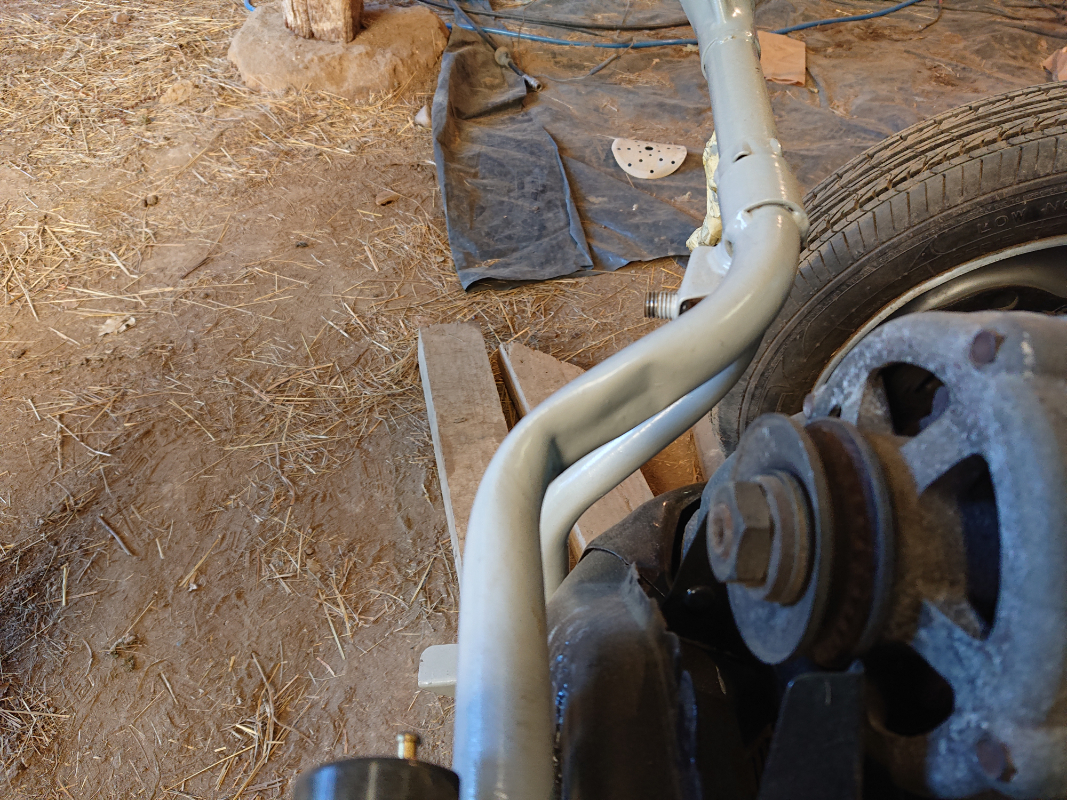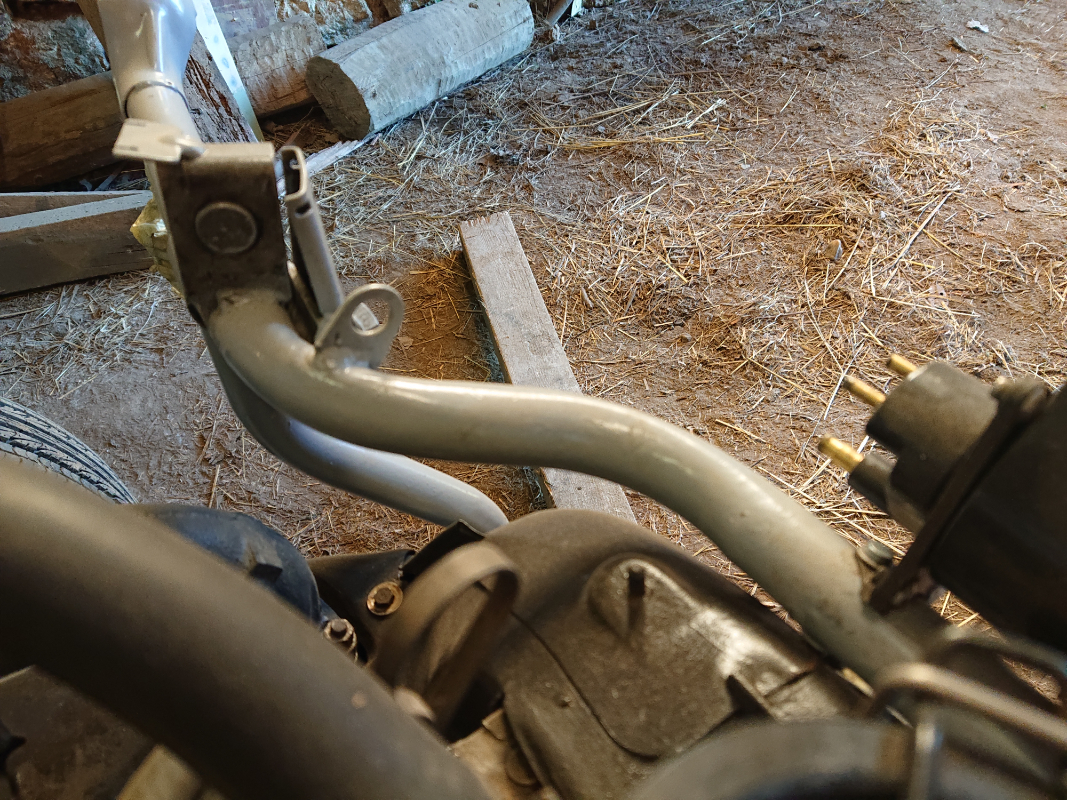 On a remarqué que la barre de support de phare était pliée côté passager à un endroit et comme redressée un peu plus loin (pas du tout symétrique par rapport au côté conducteur).