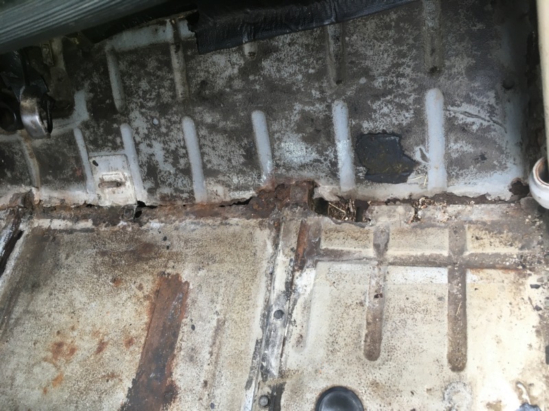 Je vous montre les planchers de la 2 CV de ma fille qui a passé le CT avant-hier, celle qui avait un problème d'alternateur, la deuche pas ma fille, percés de chez percés, et comme le contrôleur ne regarde que sous la jupe, de la deuche toujours, il n'a pas vu que la tôle supérieure du châssis est aussi percée.