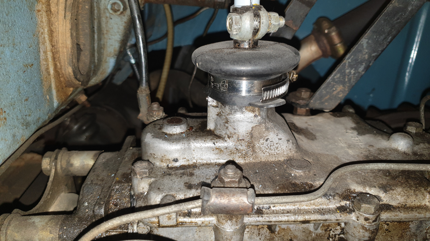 Nouveau soufflet mis en place , levier remis à sa place , reacouplement du levier de changement vitesse avec le levier de boîte .