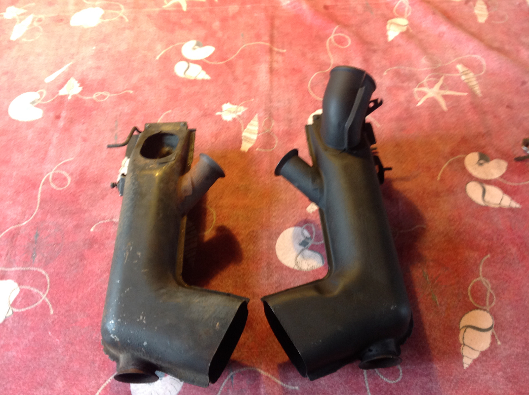 Je remarque un truc amusant (cf. photo de mes échangeurs ci-dessus) : Sur mes échangeurs la sortie vers l'intérieur du véhicule (la sortie qui me manque sur l'échangeur droit) est différente de celles des échangeurs du bon coin ou de CIPERE... ma sortie est ronde (diam 50 à l'oeil) et coudée, les sorties des échangeurs sur le bon coin sont ovales et non coudées.