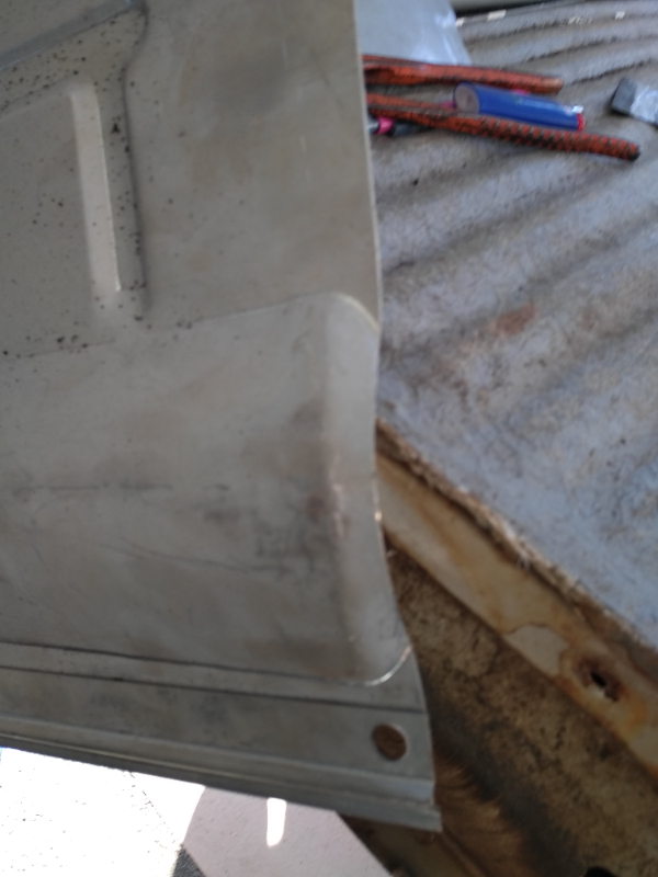 Je suis rendu à préparer mes tôles plancher à poser . Lors de la dépose avec un foret à dépointer l ancien plancher était soudé par dessus la tôle arrière et soudé sur la bas de caisse à son bon emplacement.