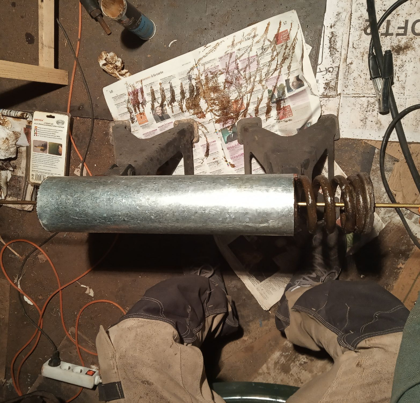 donc profitant du soleil sous ma cabane fait de tuyaux de lavabo et de bâches de serre , j'ai attendu les 4 heures conseillées et j'ai passé la deuxième couche au PINCEAU !