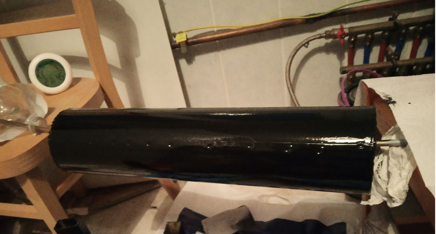 donc profitant du soleil sous ma cabane fait de tuyaux de lavabo et de bâches de serre , j'ai attendu les 4 heures conseillées et j'ai passé la deuxième couche au PINCEAU !