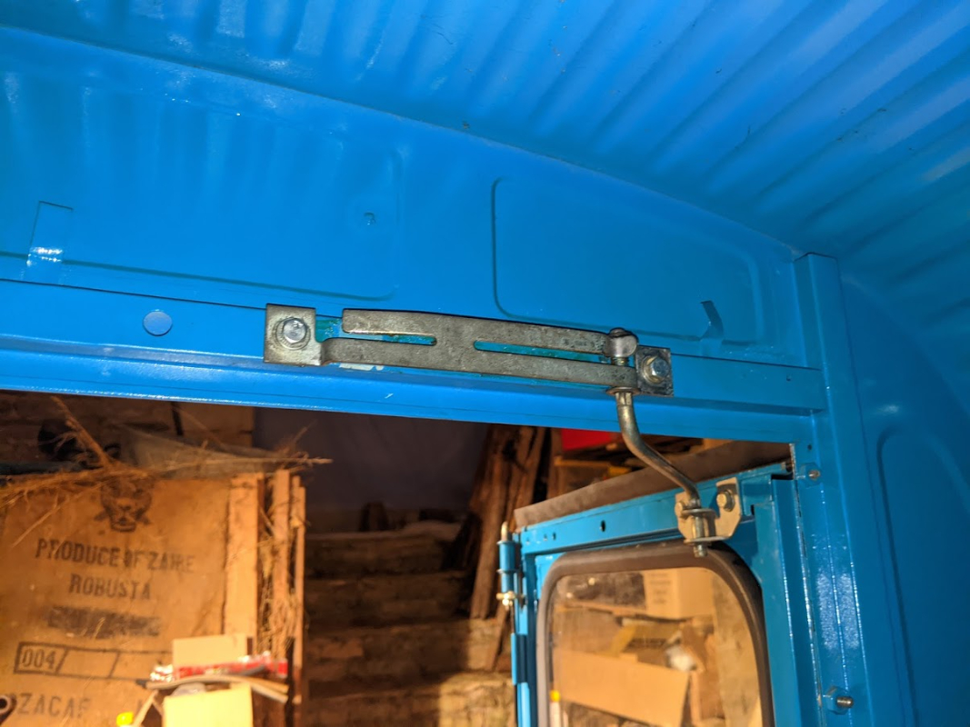 Petite subtilité, les sorte de glissières fixées dans la caisse n'existent pas d'origine, donc j'ai dû poser les écrous. Par contre, puisque les portes proviennent d'une acadiane les fixations se montent directement... bah nan ! Porte droite pas de soucis, mais si vous regardez bien sur la première photo, les trous taraudés d'usine sont du mauvais côté, juste à côté de la penne de fermeture de la porte !!