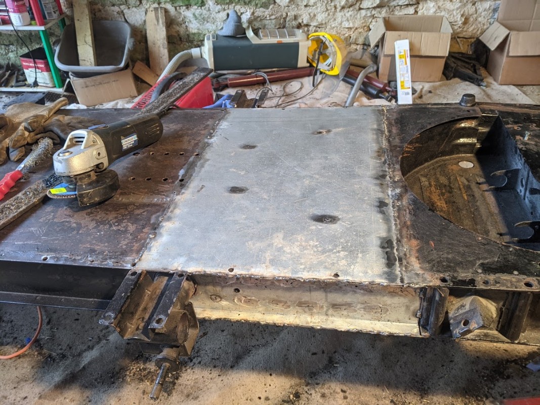 On va donc entreprendre de changer la tôle après avoir traité l'intérieur de la plateforme, puis ajouter des renforts latéraux en 1.5mm car l'ensemble a quand même dû se fragiliser.