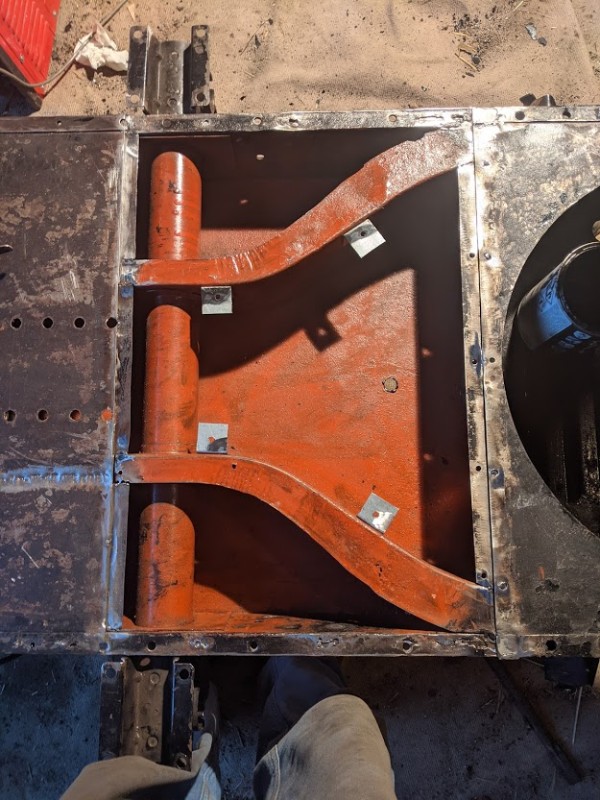 Après décoquage, on s'est rendu compte que la nouvelle tôle de châssis avaient été rivetée sur la précédente :non: