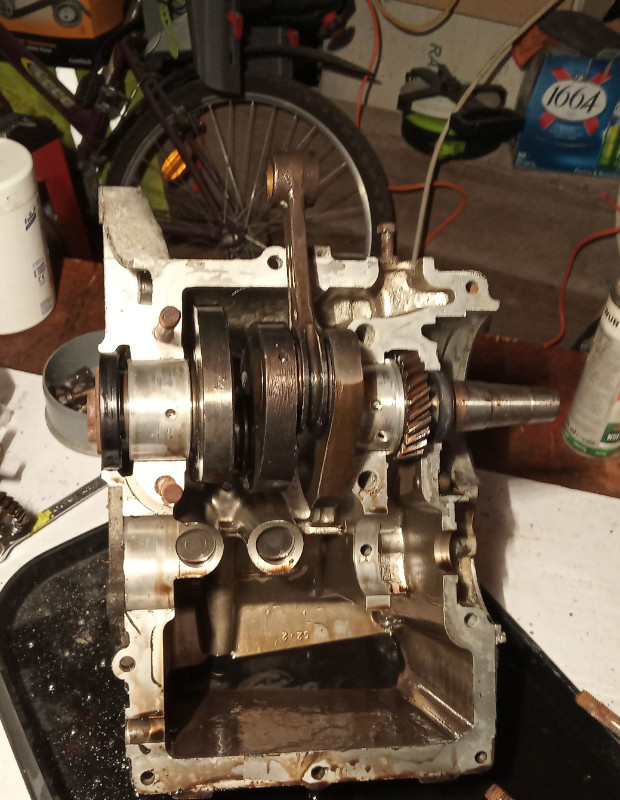 le carter brille bien par endroit, les axes de pistons paraissent neufs donc je suis satisfait de partout !