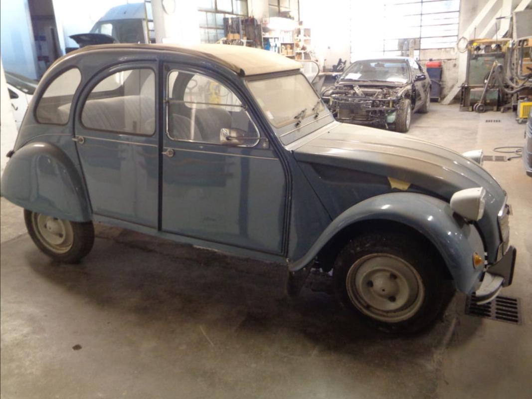 Il s’agit d’une 2CV6 Club de 1987. Elle a été vendu à un garage Peugeot en 2016 et stockée chez eux depuis. Le vendeur est un mécano à la retraite qui fait maintenant de l’achat/revente de véhicule.