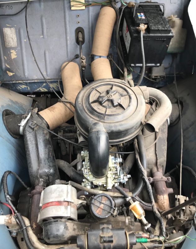 Le compteur affiche 4000 km donc 104000 a priori. Les planchers avant ont été repris mais d’une façon qui va vous déplaire à mon avis...une plaque a été soudé. Le moteur a démarré quand il l’a récupéré mais il tournait mal. Lorsque j’y suis allé il venait de changer le carburateur et devrait aussi changer les plaquettes de freins, les bougies, des cosses électriques, faire la vidange et vider le réservoir pour mettre de l’essence « propre ». Je dois donc y retourner pour faire l’essai une fois tout cela effectué.
