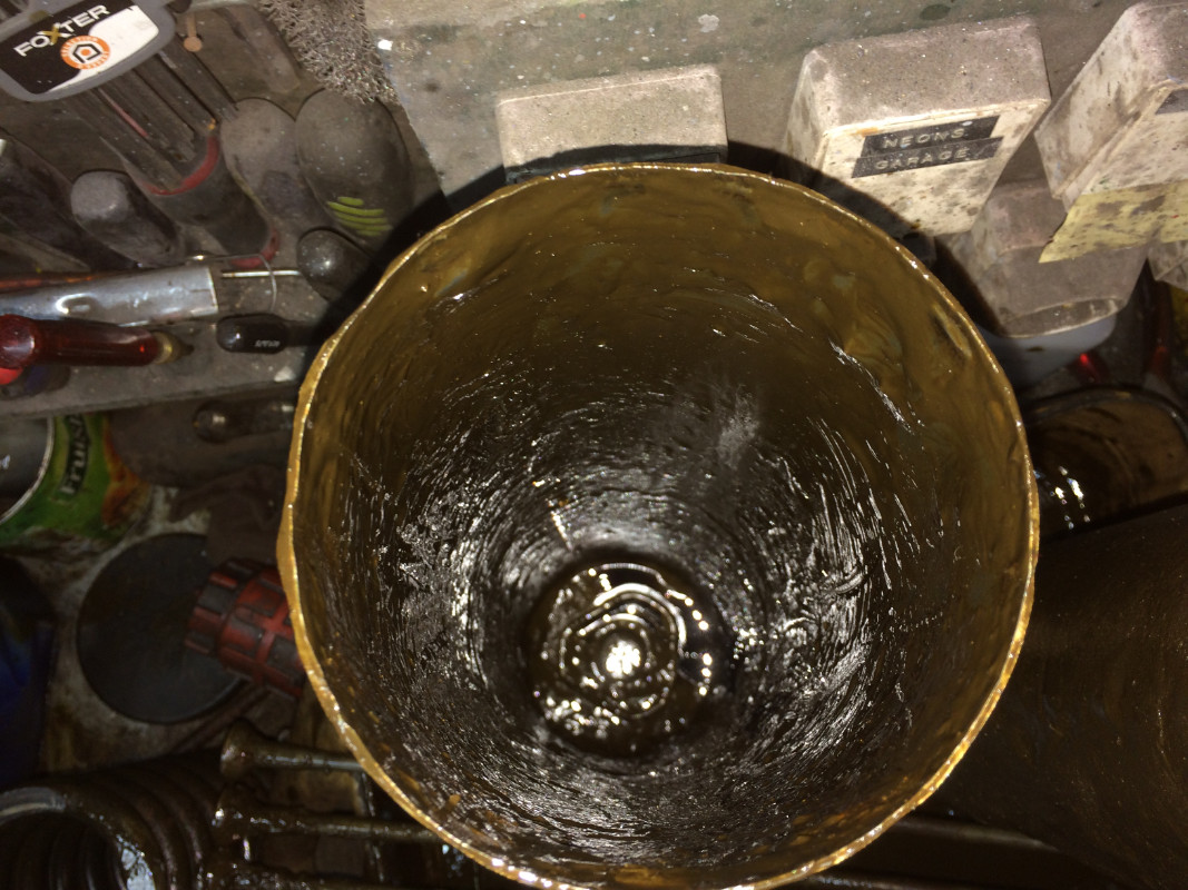 une fois les pièces neuves insérer dans les pots nettoyer et réparer (il faut qu'ils soit super droit et bien cylindrique ,autrement les coupelles bloquent !!)soudage du bouchon de pot puis peinture et cela donne ça :