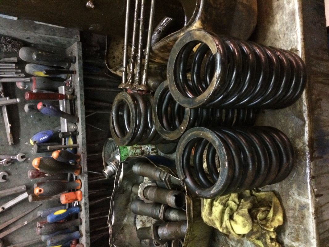 bon , pour continuer la rénovation :pour remonter le châssis j'ai été obliger de rénover les pots de suspensions . en effet sur les 2 il y avait 1 tirant sectionner (je pense par la rouille !!).