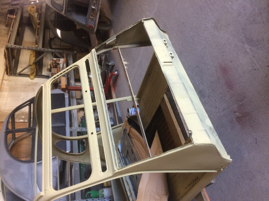bon la suite de la caisse: il y avait un peu de gruyère !! on avait besoin d'un bout de gouttière pour remplacer une partie inexistant (en fait dévorer par la rouille )donc on a récupéré un morceau de gouttière sur une donneuse d'organe ,on l'as affiné puis ressoudé a sa place bandeau arrière changé idem pour le fond de coffre on a également restauré un morceau de la custode gauche on a encore rebouché quelques trous deci-dela un peu de décapage pour remettre d'aplomb un petit coup de jointement mise en apprêt voila , la partie restauration caisse a été terminé en juin 2018,ensuite travaux maison puis aléa familiaux,travaux chez les enfants,boulot, puis etc .....