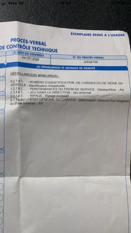 C'est quoi la déformation du longeron ou de la traverse avant indiqué sur le contrôle technique?