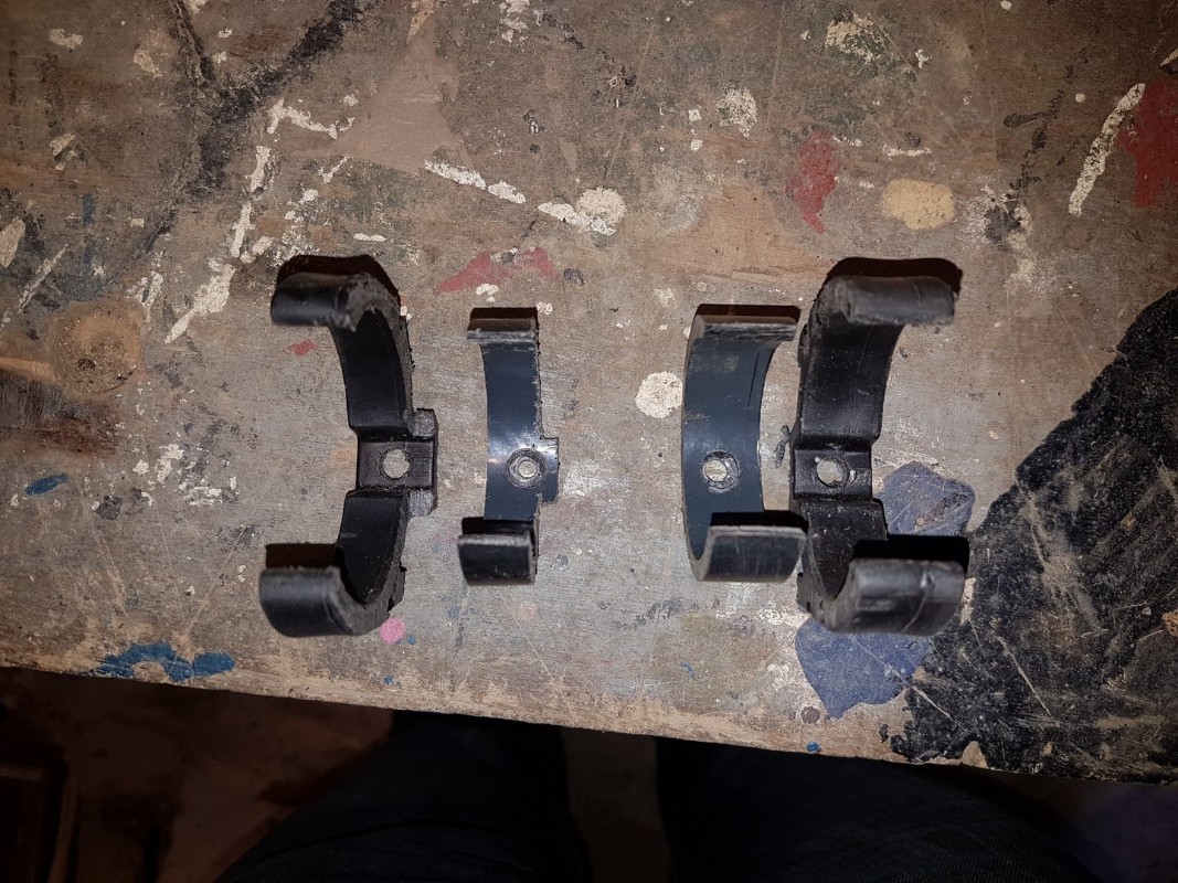 depuis le temps que je devais me pencher sur la question, je suis allé dans l'atelier et en fouinant, j'ai trouvé 2 colliers de plomberie dia.40, qui vont aller pile-poile ! Certes, moins rapide que les caoutchoucs de siège, mais les miens sont tellement cuits que je risquerai de perdre la bobine en roulant, ensuite je me suis dit qu'elle serait moins sujette aux vibrations fixée ainsi, et pour finir, j'avais les colliers !
