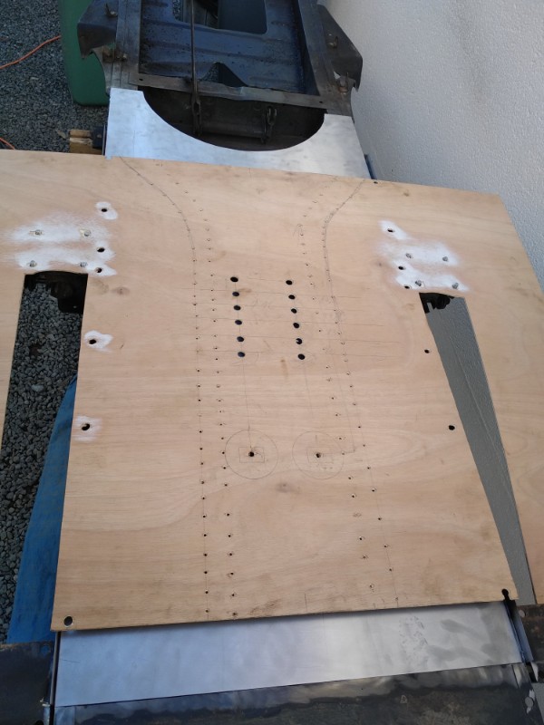 Un gabarit en contreplaqué posé sur le chassis et positionné après sur la caisse...les trous de fixation doivent correspondre.