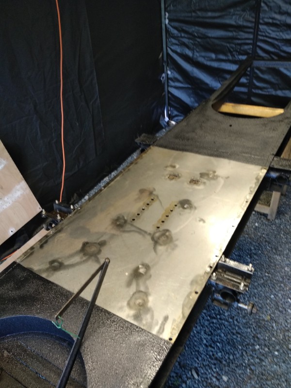 Je vais devoir faire le même travail pour mon AK400 ...AU final , quelle épaisseur de tôle tu as choisi ? Je vois sur les photos que tu as placé deux cornières le long du châssis, je suppose que tu vas les souder, replacer la plaque de fermeture et rabattre ensuite les cornières pour finir par les soudures...mes questions :