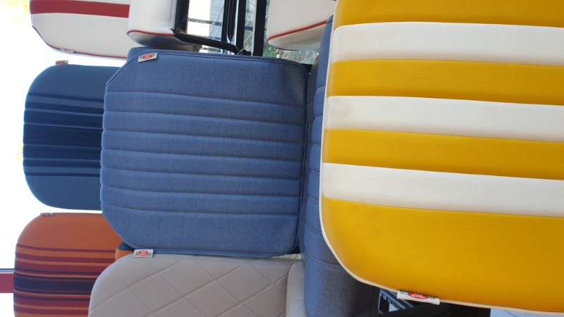Lors d'un passage au show room d'un revendeur de Signes (83), je suis tombé sur un modèle qui m'a intéressé: Skaï Blue Jeans Clair. Cette couleur était le compromis parfait, assez clair, bleu (ma voiture est bleu et blanche), et avait l'air assez qualitative.