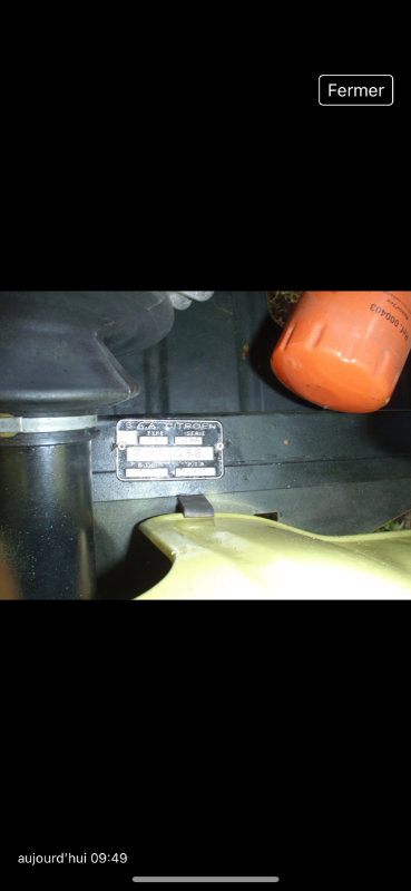 Pour la plaque d'identification moteur, il m'a dit qu'il n'y en a pas, il m'a juste parlé de l'identification du châssis...j'ai révisé sur le site l'explication des 4 identifications (moteur, constructeur, chasses, peinture), je vais lui faire parvenir...