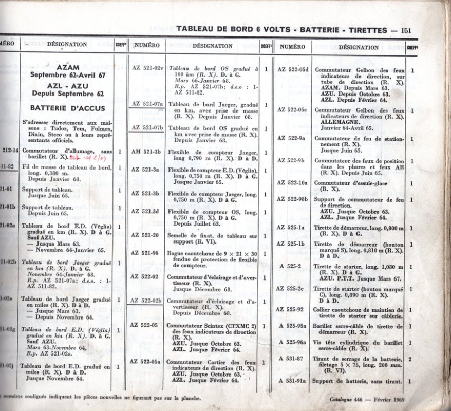 Si tu veux je te scanne les pages correspondantes de mon catalogue de pièces de rechanges, ref. n° 446, édition de janvier 1968 pour 2 CV et fourgonnette 250 kg, modèles 1949 à 1968.