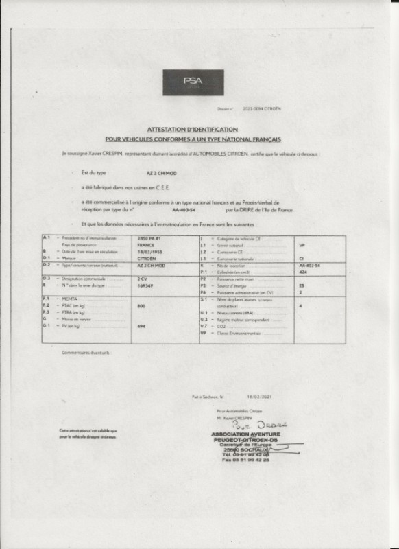 Essayer d'obtenir une carte grise collection !! Il a y a avec les attestations de cessions, et l'attestation de Citroën..