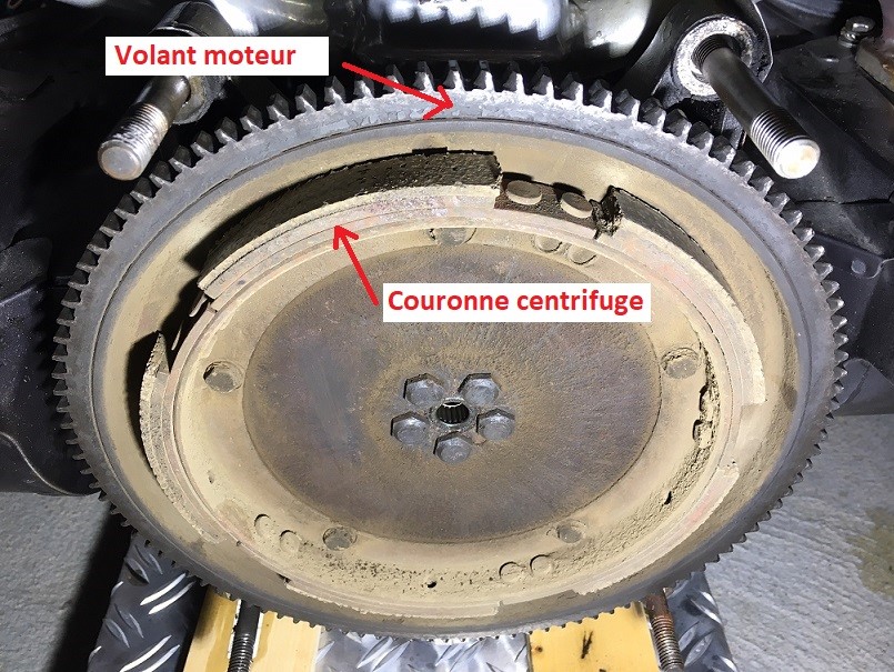 Couronne embrayage centrifuge fixée sur le volant moteur :