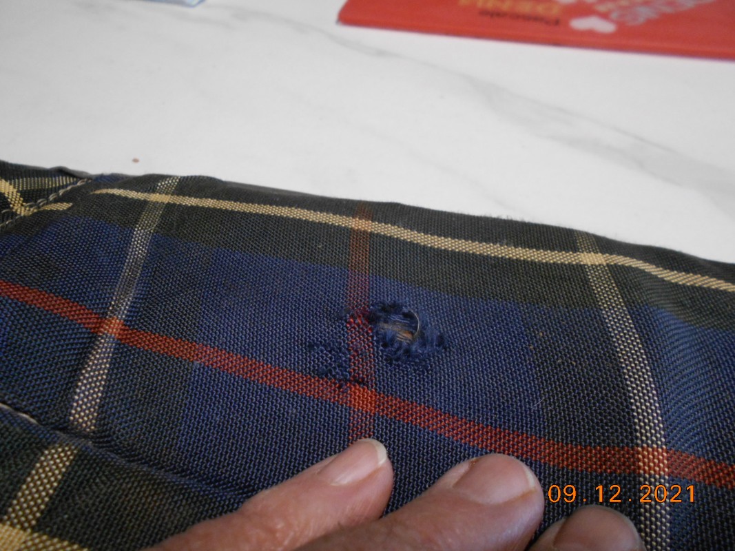Par ailleurs deux ou trois accrocs que je vais faire reprendre et le galon qui s'est décousu à trois ou quatre endroits ...