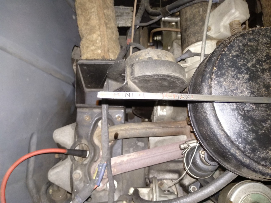 après avoir vidangé ma deuch, remise de la nouvelle huile 2,5 environ , mais ou et le mini du maxi sur la barrette ??