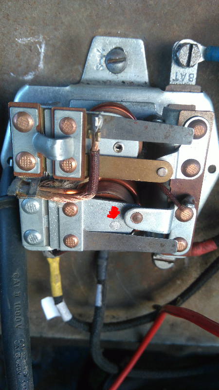 Et jouer avec les petites vis de réglage ( là il y en as) le conjoncteur s'enclenche (et se coupe contact coupé) j'ai de l'excitation et ma dynamo donne 7,5 au maxi,