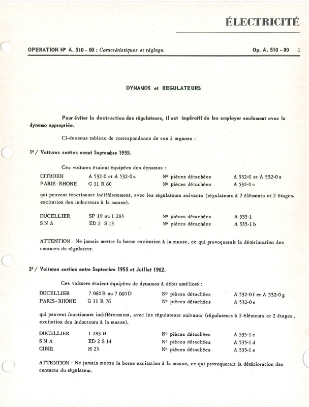 Tu as les valeurs de réglage dans T1-Opération A 535-0 pour les régulateurs Ducellier et Paris-Rhône, mais sans le banc, quasi impossible à faire.
