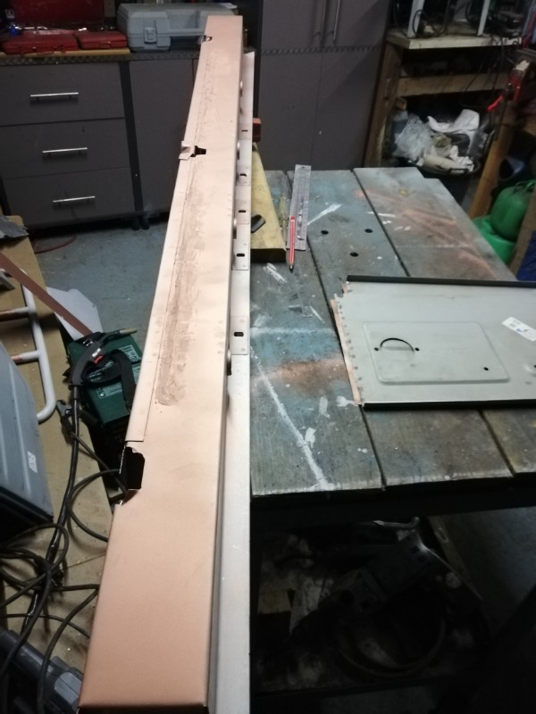 Autre petit problème , les tôles latérales sont trop longues et je vais devoir découper et refaire la bordure : Comme vous pouvez voir, je suis loin du long fleuve tranquille !