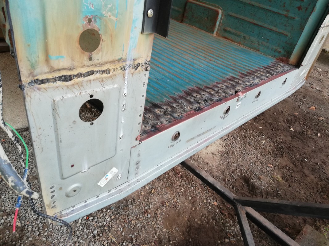 Démontage de l'arrière pour effectuer les quelques ajustages...et pointage des panneaux latéraux : J'ai terminé les soudures des trois pièces arrières : Demain, je passe au meulage des soudures, et il y en a