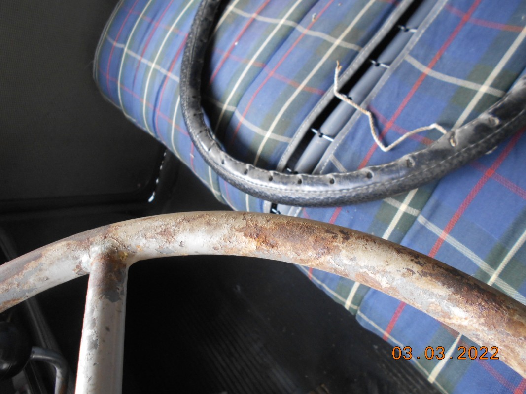 Pour ton volant, je luis passerai une cire de carrossier, ça relèvera les reste de peinture et ça foncera la rouille et ça bloquera le tout.