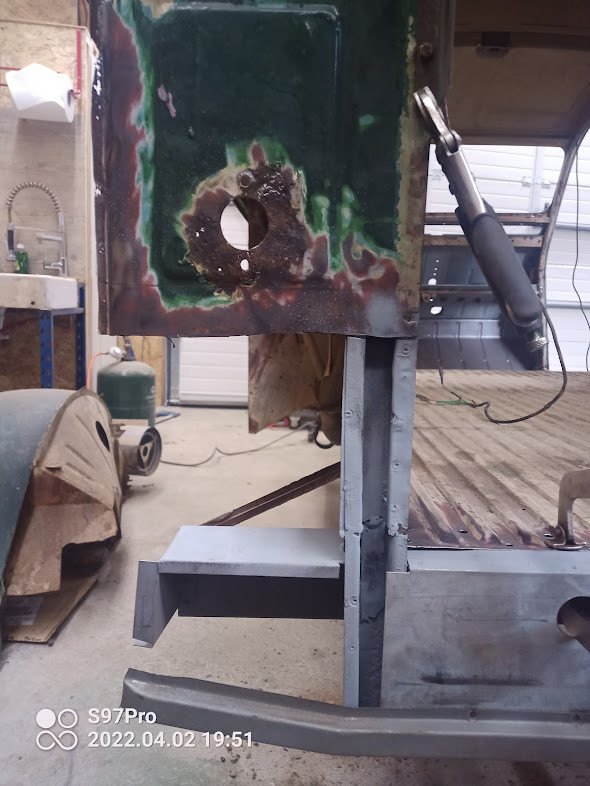J'ai dépointé les Supports de butée, sans étonnement il y a une partie de tôle un peu rongée par la rouille qu'il a fallu changer. L'autre non Reçu enfin les support de butée et soudé dans la foulé Comme je m'en doutais je n'ai pas eu de nouvelles du revendeur pour les supports de poulain.