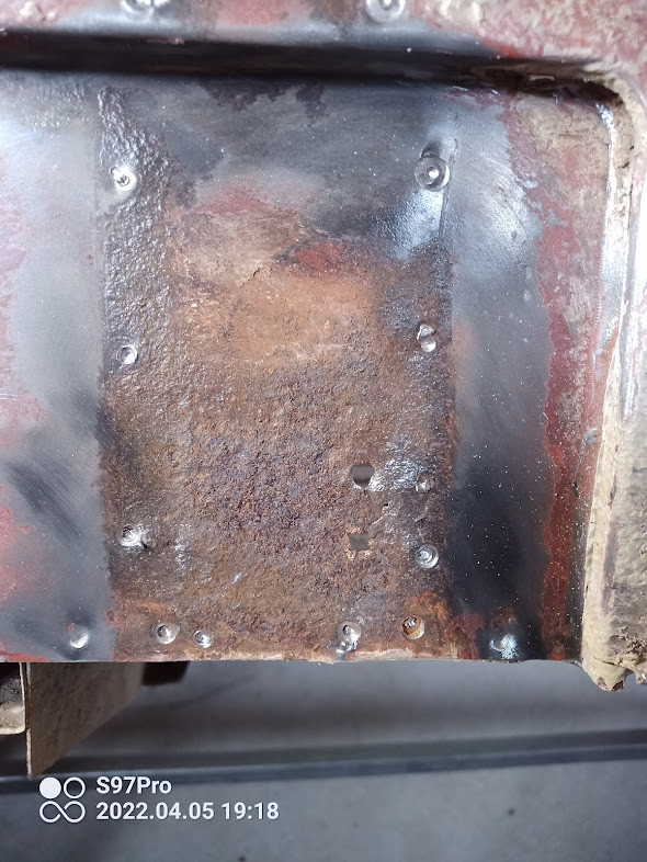 soudure du panneaux droit et gauche avec rustine pour le coté gauche au niveau du feu. Lucky moi j'ai pas les renfort sur la jupe pour souder le poulain, c'est toi qui les a rajouter ou ils y étaient d'origine?