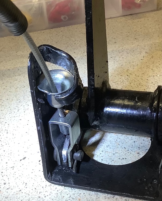 Deux photos’ avant et après. Si tu n’as pas ce système de pédalier, vérifie quand même tout le cheminement du câble d’embrayage.