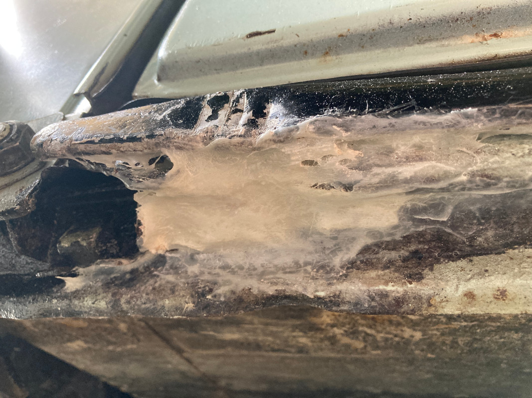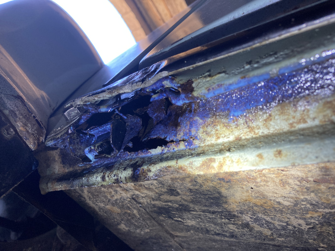 Ma toute premiere reparation de carrosserie perforante. Trou cree par un ancien proprio qui a priori a mal place le cric.