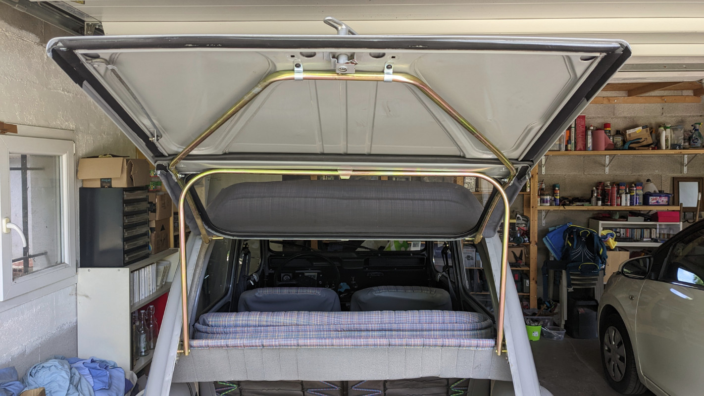Bien que la porte soit plus lourde, la grande ouverture du hayon facilite grandement le chargement. le verrouillage par la barre sécurise le maintien du hayon ouvert.