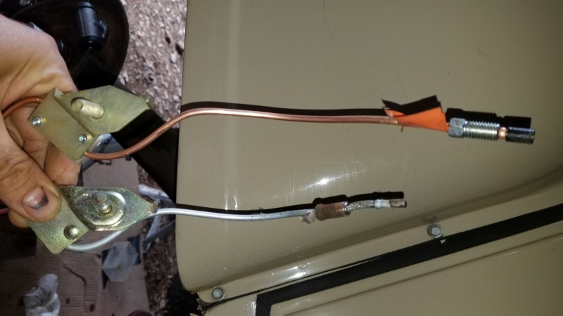 Je refais les freins à tambour arrière et remplace les 2 tubes frein qui passent à l'intérieur de la traverse du système de bras de suspension arrière. Cela a été parfaitement illustré par Pops34, mais ma version de tube ne possède pas les platines de fixation.