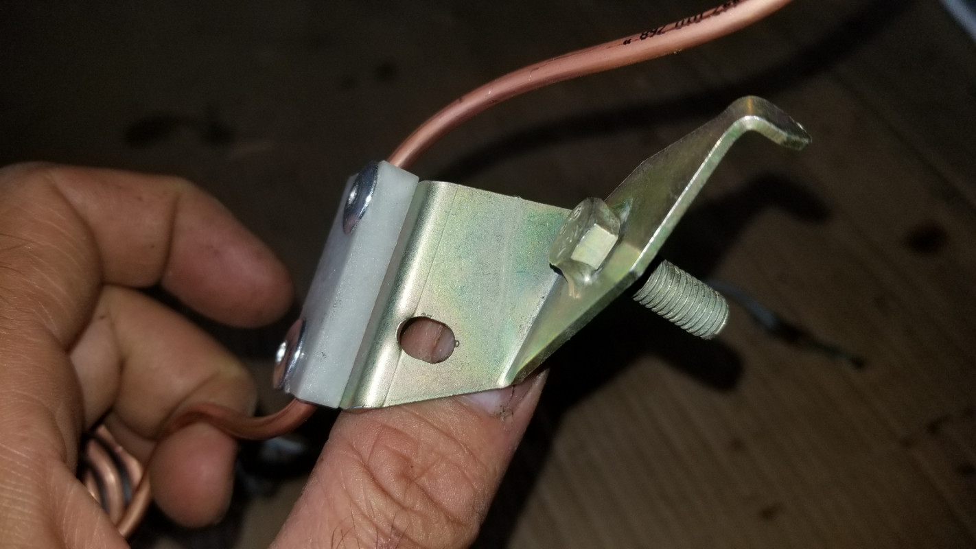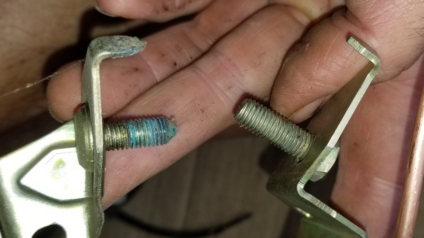 l'extrémité du boulon sur la refabrication n'est pas conique, ce qui sur l'origine facilite les choses. Elle est bien carrée donc il faut vraiment avoir de la chance pour tomber pile face au trou