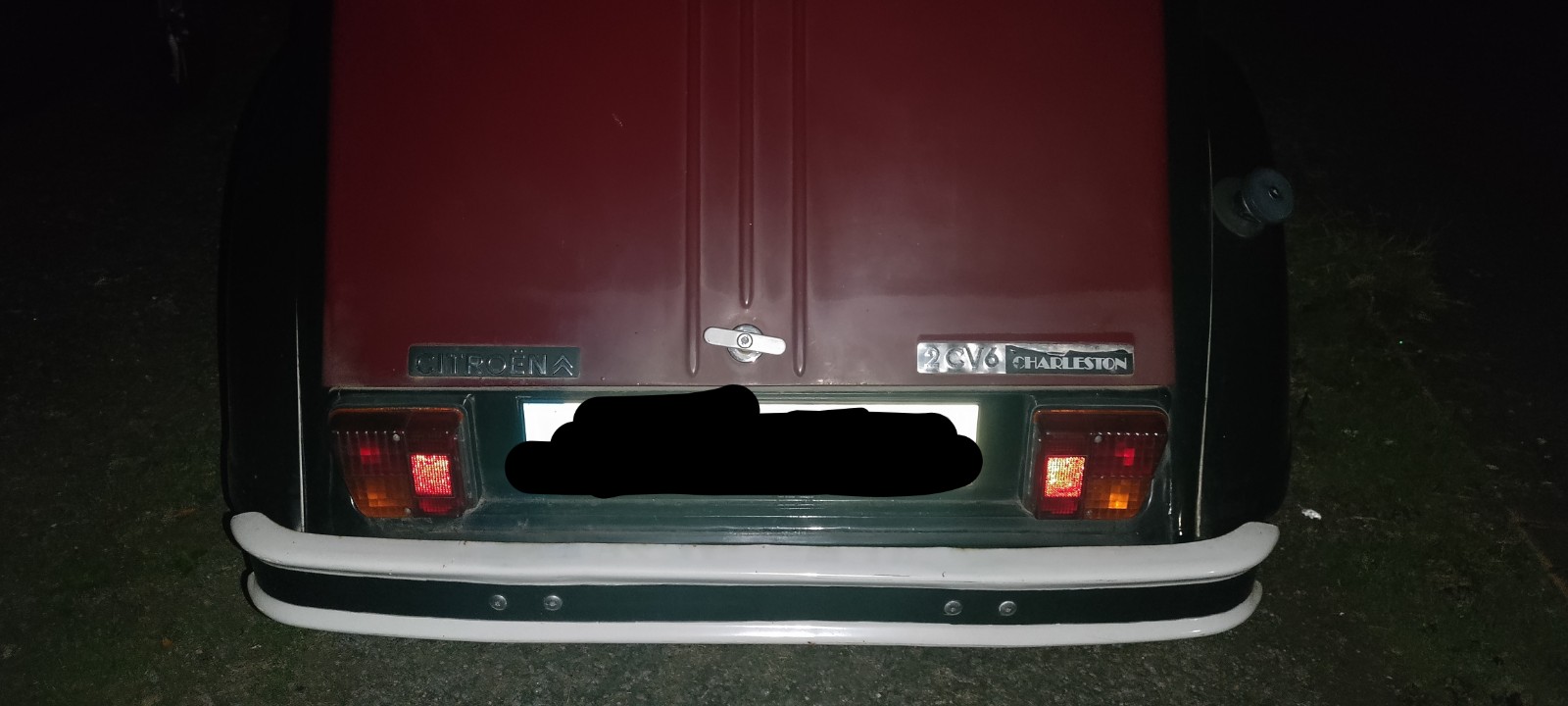 En cherchant à remplacer le monogramme Charleston sur ma 2cv, j'ai parcouru un peu les photos sur Google et je me suis aperçu que ma 2cv avait le monogramme situé sur la partie droite du coffre, alors que sur toutes les images que j'ai pu trouver sur Google, le monogramme est situé à gauche !