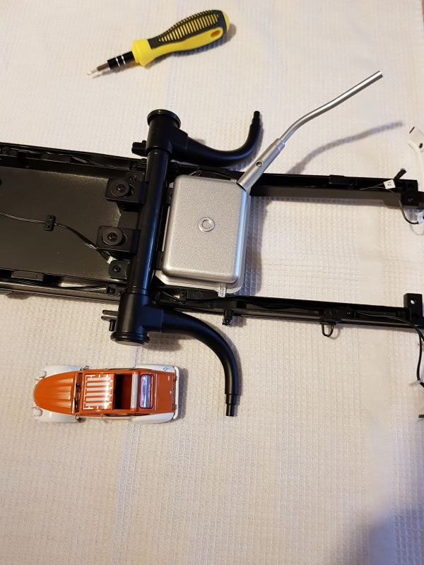 Suspension arrière et tube de remplissage du réservoir (ce dernier sera installé lors d'un prochain fascicule)