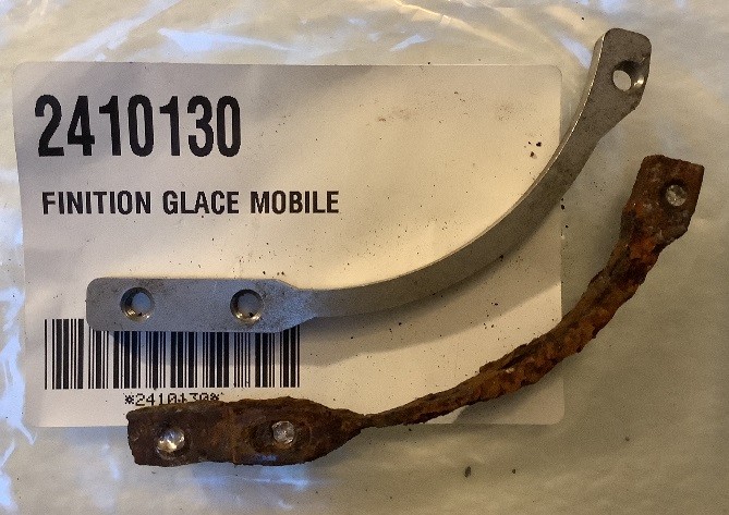 C'est douloureux, d'où la nécessité de remplacer l'ancien système par les modernes (à gauche l'ancien, à droite le moderne) : En retirant l'ancien système, un trou rond apparait, il doit être différent des dernières fixations et en achetant un kit impossible de le poser car le trou d'origine est trop grand. J'ai trouvé chez Méhari Club Cassis un système au top !