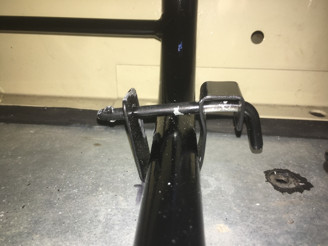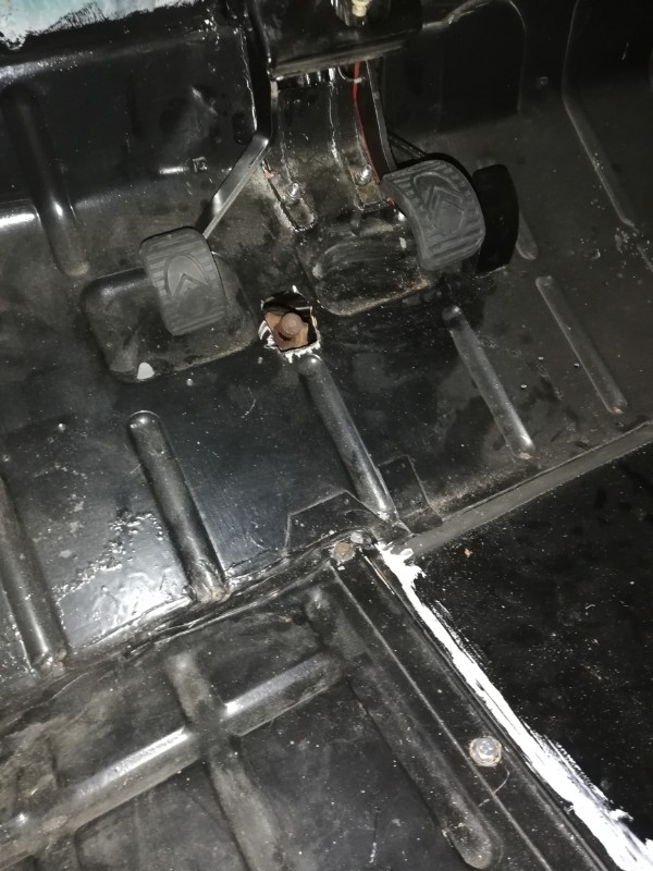 J'ai remonté le pédalier et son support . Cela a été plus facile que je pensais...Bon il m'a fallu quand même faire un ajustage à cause du plancher pédale dont les deux trous du support de MC ne coïncidaient pas...j'ai percé deux trous de 7, 1cm plus bas sur le support lui même ( en bleu pétrel). J'ai retrouvé une photo qui date de bientôt 2 ans déjà car je me demandais comment était placée cette canalisation de frein... Trop bien l'album souvenirs !