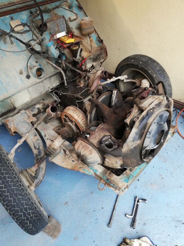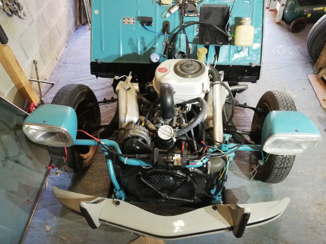 Après voilà le moteur et l'intérieur partiellement remonté car dans l'attente de la peinture finale : Pour le reste, ça attend son heure :