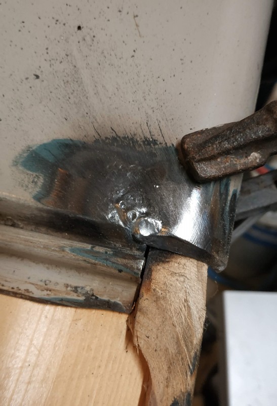 On a réparer les ailles arrières en les ressoudant au chalumeau en utilisant des baguettes avec 30% d'argent.