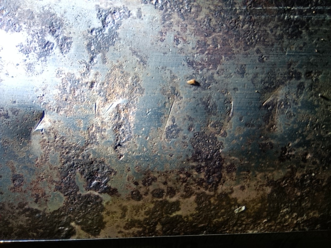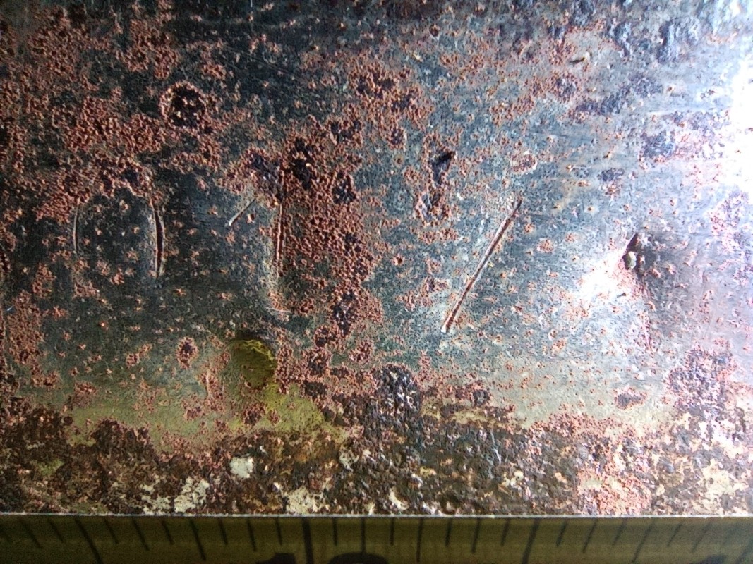 J'ai pu faire apparaître le mien à l'aide d'un "dremell" avec une petite brosse métallique au bout.