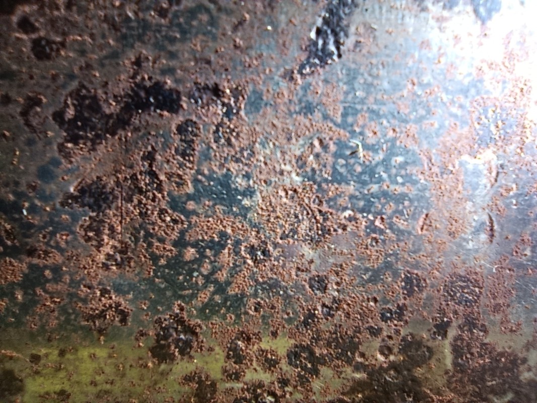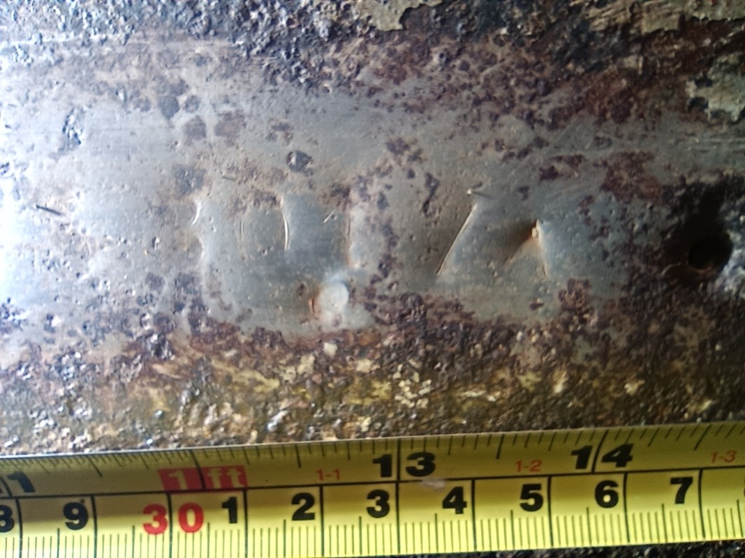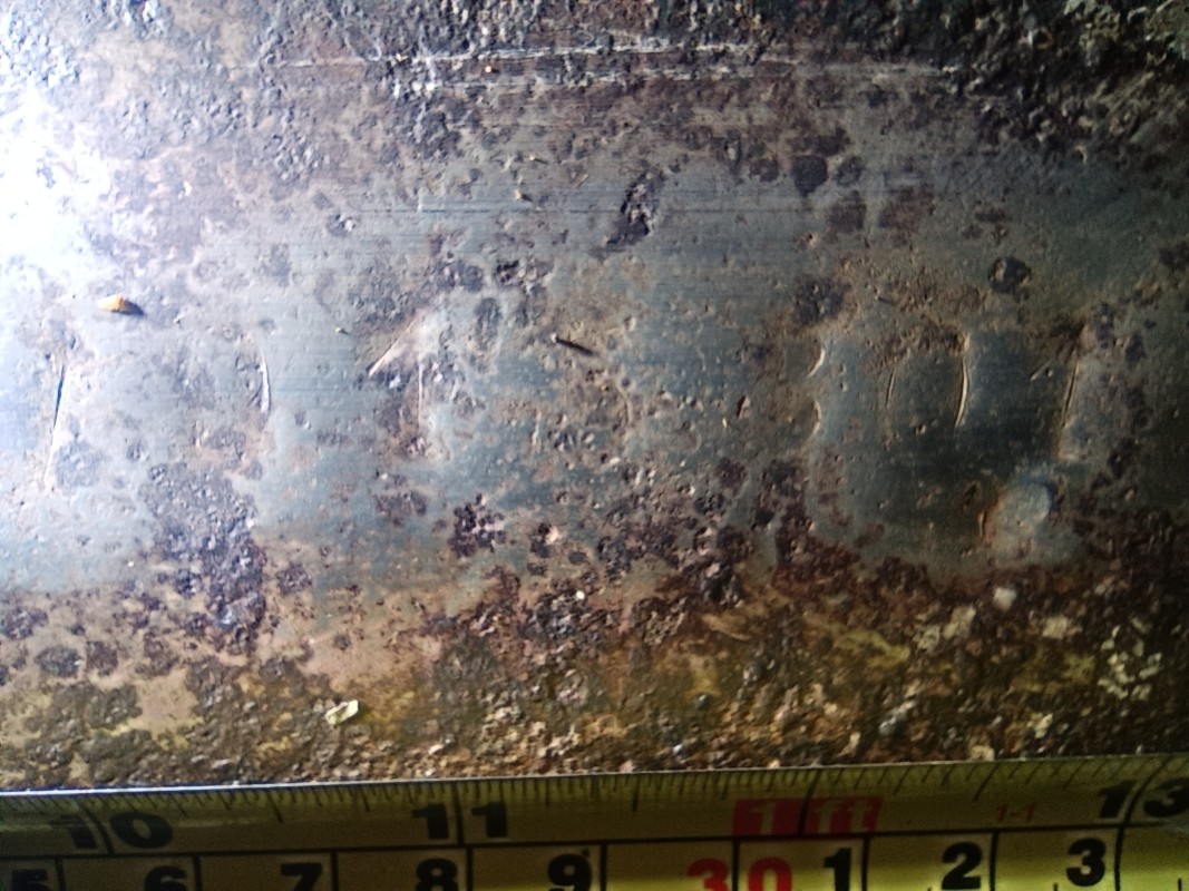 Grâce à ce forum, j’ai maintenant localisé le numéro frappé à froid sur le plate-forme près du siège passager, qui, je pense devrait être le même que le numéro de série sur la plaque du constructeur. Malheureusement, le nombre frappé à froid n’est pas concluant en raison de la difficulté à lire les chiffres, de la rouille et d’un mauvais frappé.